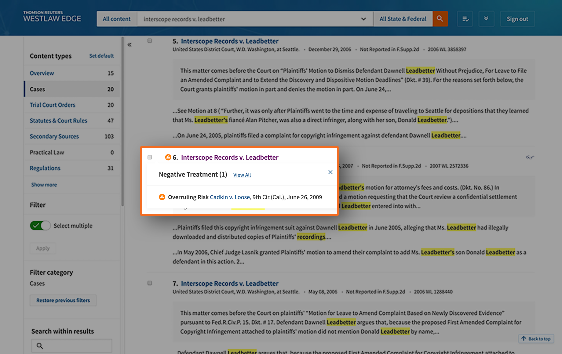 - 2018 – Westlaw Edge, the most intelligent legal research platform ever, is released. Westlaw Edge includes access to first-of-its-kind tools like KeyCite Overruling Risk, a powerful legal search engine, and integrated litigation analytics that helps expedite legal research tasks that were once incredibly complex and time-consuming.